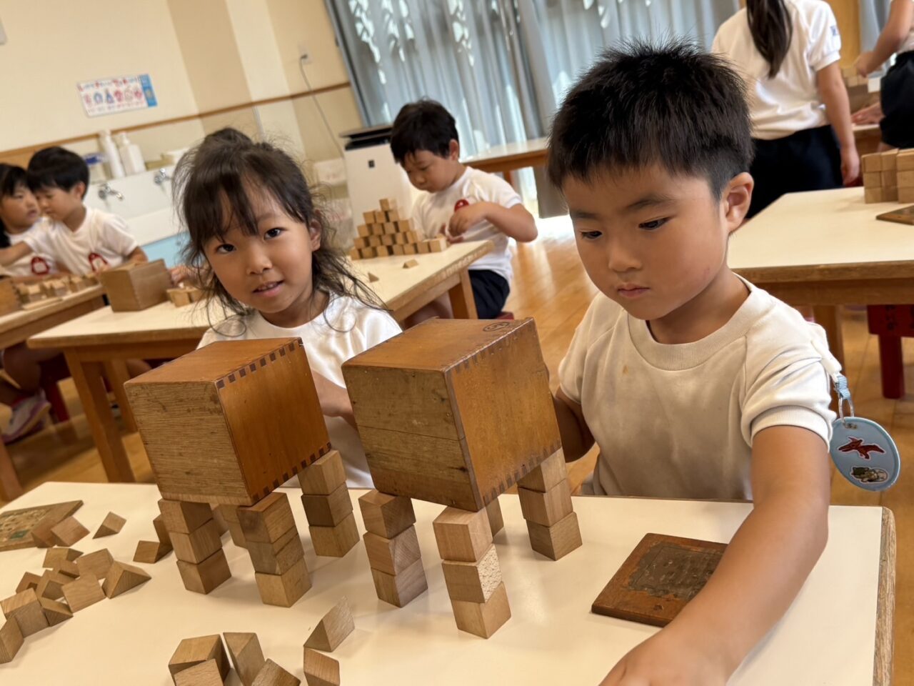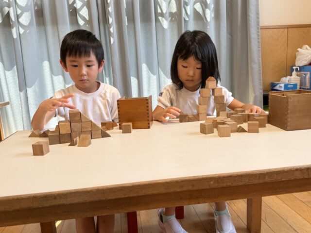 2025.09.10 のびるブログ 第五恩物で… さくら組さんが、第五恩物であそびました。 どんなものができたかな?!と、担任の先生がお机を見に行くと、 素敵な作品が沢山できていましたよ! 子ども達から出てくる柔軟な発想に、驚かされるばかりです! ALL