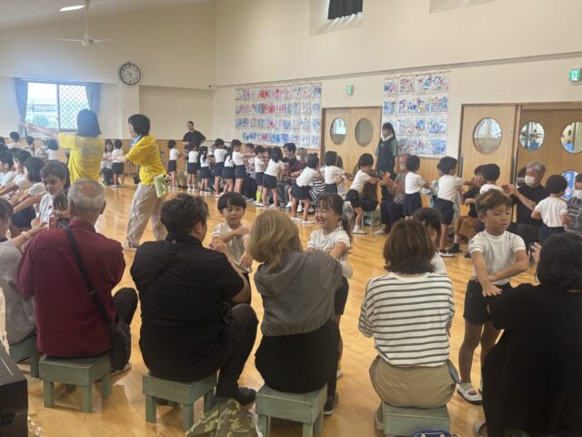 2025.09.12 のびるブログ 祖父母参観日 さくら組さんのおじいちゃんおばあちゃんを園にお招きして、祖父母参観日を行いました。 おじいちゃんおばあちゃんと一緒に手遊びをしたり、 フォークダンスをしたりと、ふれ合い遊びを行いました。 普段の参観日とはまた違ったお客様に、子ども達も笑顔いっぱいでした。 最後にお歌や特性のポストカードのプレゼントを行いました。 またのびる幼稚園に遊びにきてくださる事を、子ども達も心待ちにしている様子でした☺ ALL