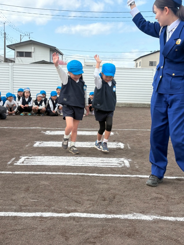 2026.03.09 のびるブログ 交通安全教室 指導員さんにお越しいただき、ばら組さん、さくら組さんが交通安全教室を行いました。 それぞれお部屋で、道路の歩き方や、気を付ける事のお話を聞いてから お外に出て実際に歩く練習を行いました。 緊張した様子でしたが、手を挙げて左右確認をし、 上手に渡っていました💮 ALL