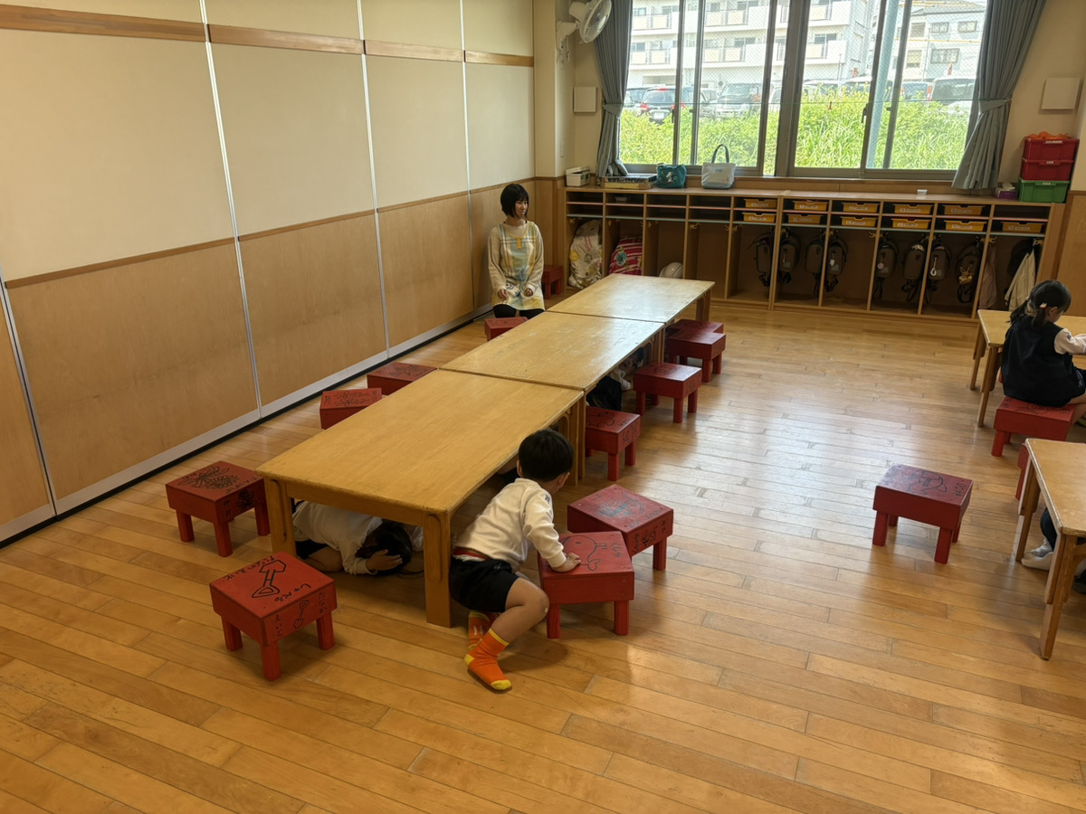 2026.04.22 のびるブログ 2026年度総会と引き取り訓練がありました 2026年度、のびる会総会がありました。 お忙しい中、子ども達の為に意見を交わしていただき、ありがとうございました。 総会の間に、子どもたちは地震の避難訓練です。 どうやって身を守るのか話を聞いたり、実際に身を守る行動を練習しました。 ㋔おさない ㋩はしらない ㋛しゃべらない ㋲もどらない の再確認も行いました。 引き取り訓練では保護者の方と手を繋いで帰る事も忘れないでできたかな!? ALL